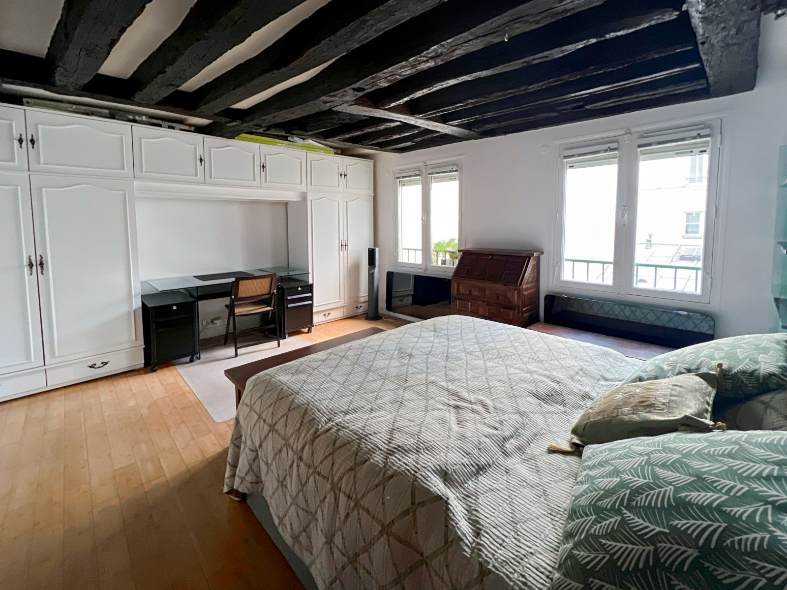 Cet appartement en bon état offre des prestations de caractère : poutres, parquet en bambou et des espaces de rangement. Une cave complète le bien. Il est situé à proximité immédiate de nombreux commerces, boutiques, restaurants, métros et RER.