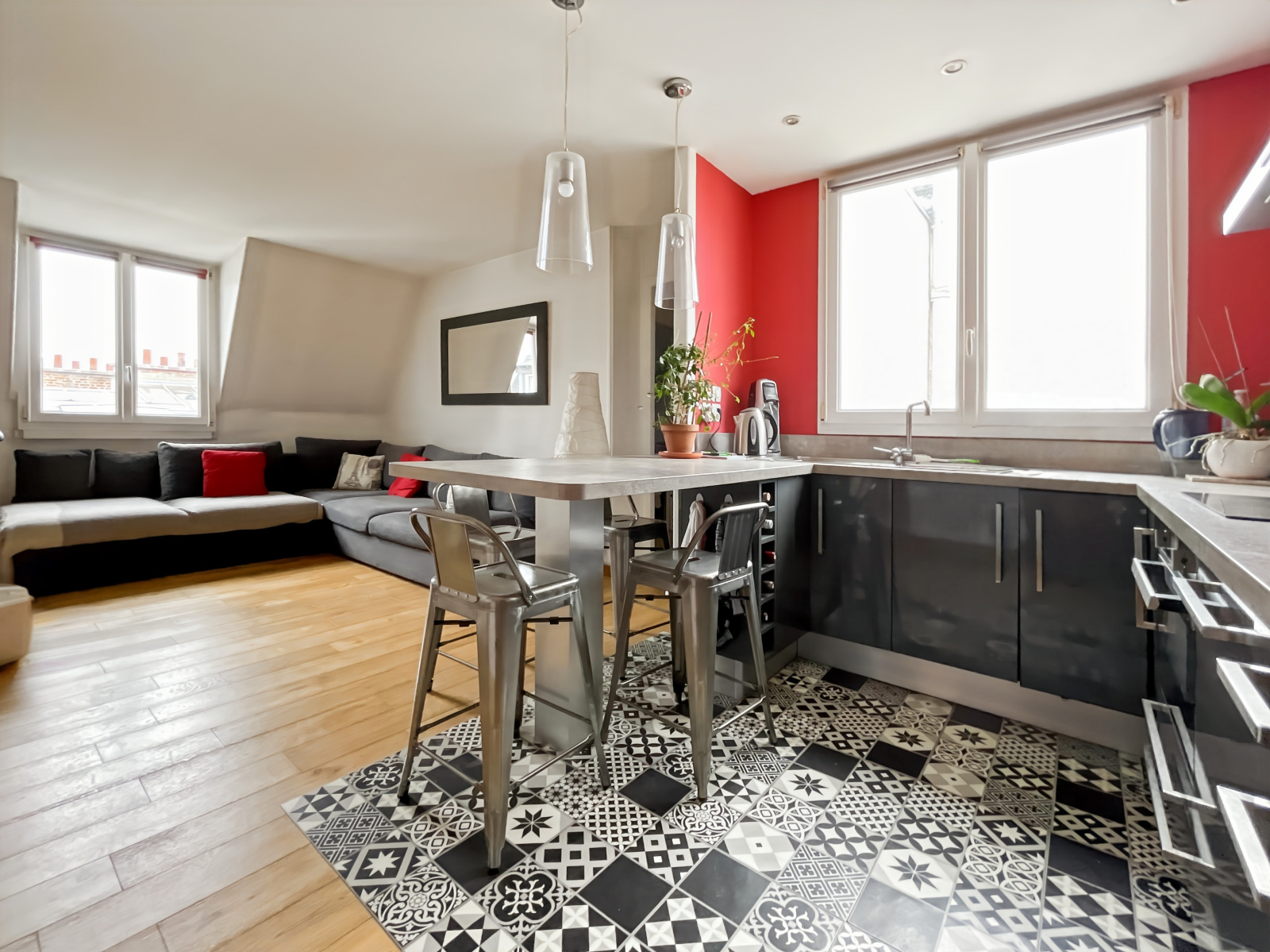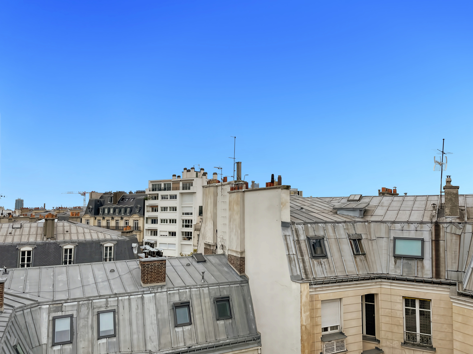 Typiquement parisien, niché sur les toits, ce charmant 2 pièces lumineux, aux vues dégagées et entièrement au calme est idéalement situé à 100 mètres du métro Villiers.