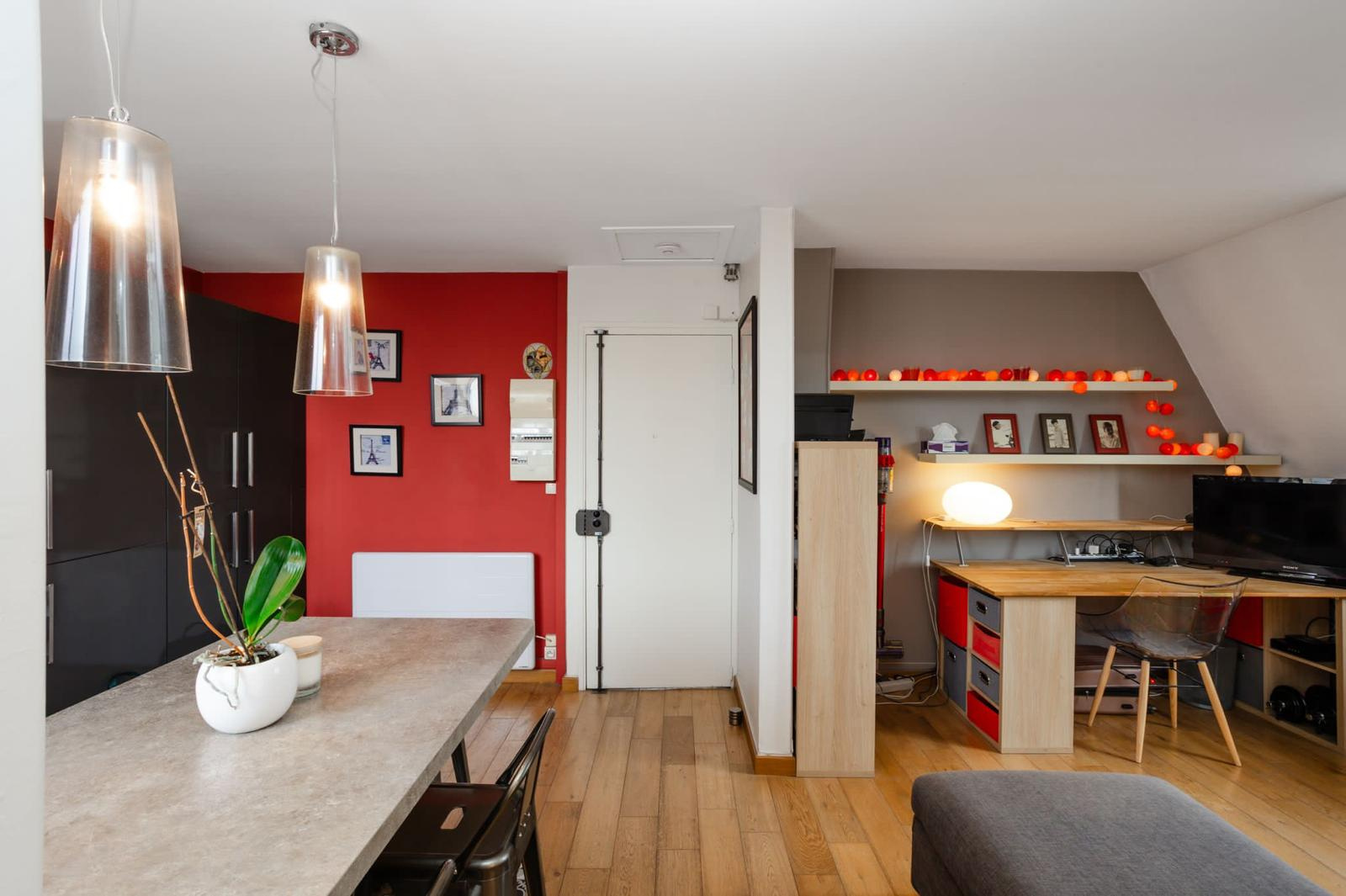 Paris (75017)Paris 17 - Villiers - 2 pièces de 37,15 m² (35,12 en loi carrez) au 7ième et dernier étage - sans ascenseur et accessible par l'escalier de service. Il bénéficie d'une belle adresse, a été rénové avec soin et sans perte d'espace. Une vaste pièce de vie avec sa cuisine ouverte entièrement équipée (plus de 24 m² pour cet ensemble vraiment ensoleillé dominant les toits de Paris), une chambre avec des rangements et une salle d'eau avec WC composent ce bien.