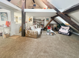 À l’étage, une mezzanine, divisée en deux espaces distincts, fait office de bureau et de seconde chambre. Une cave complète l’ensemble.