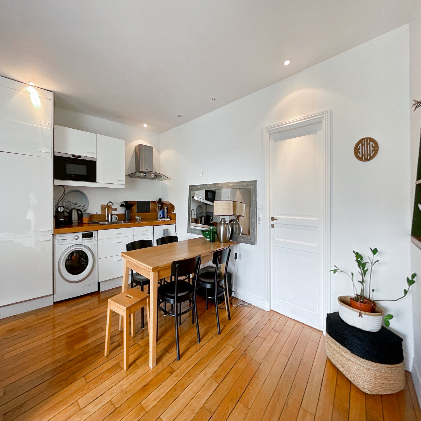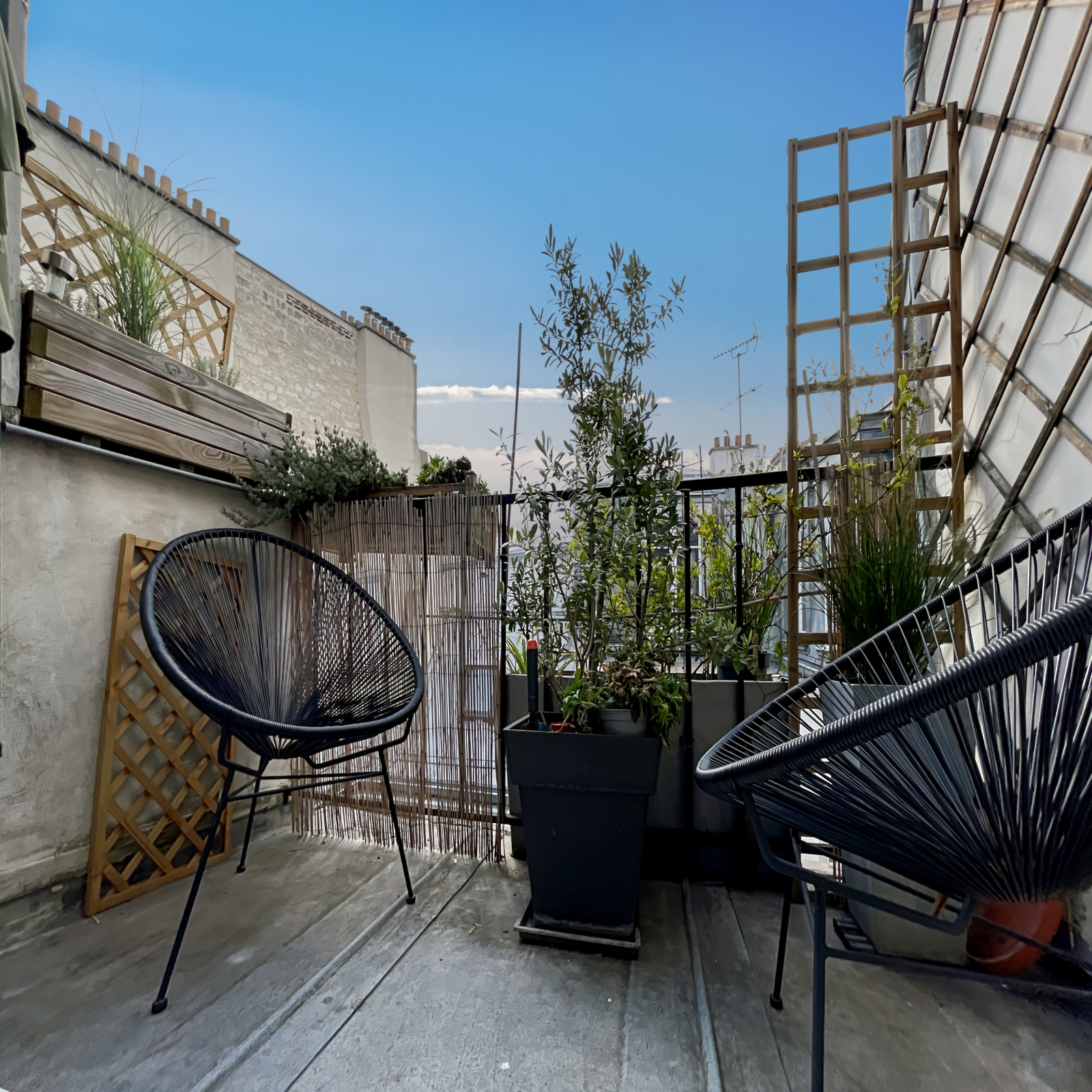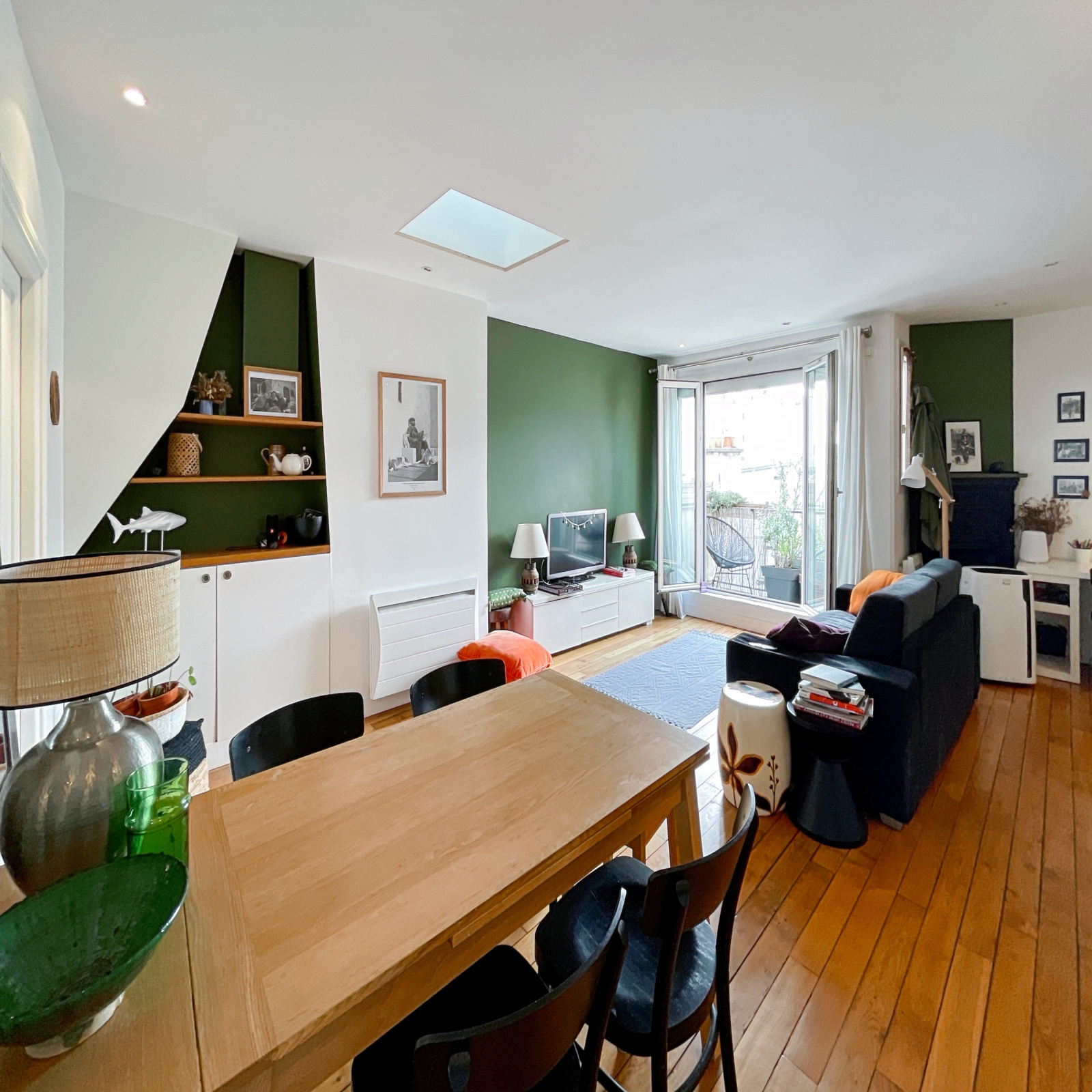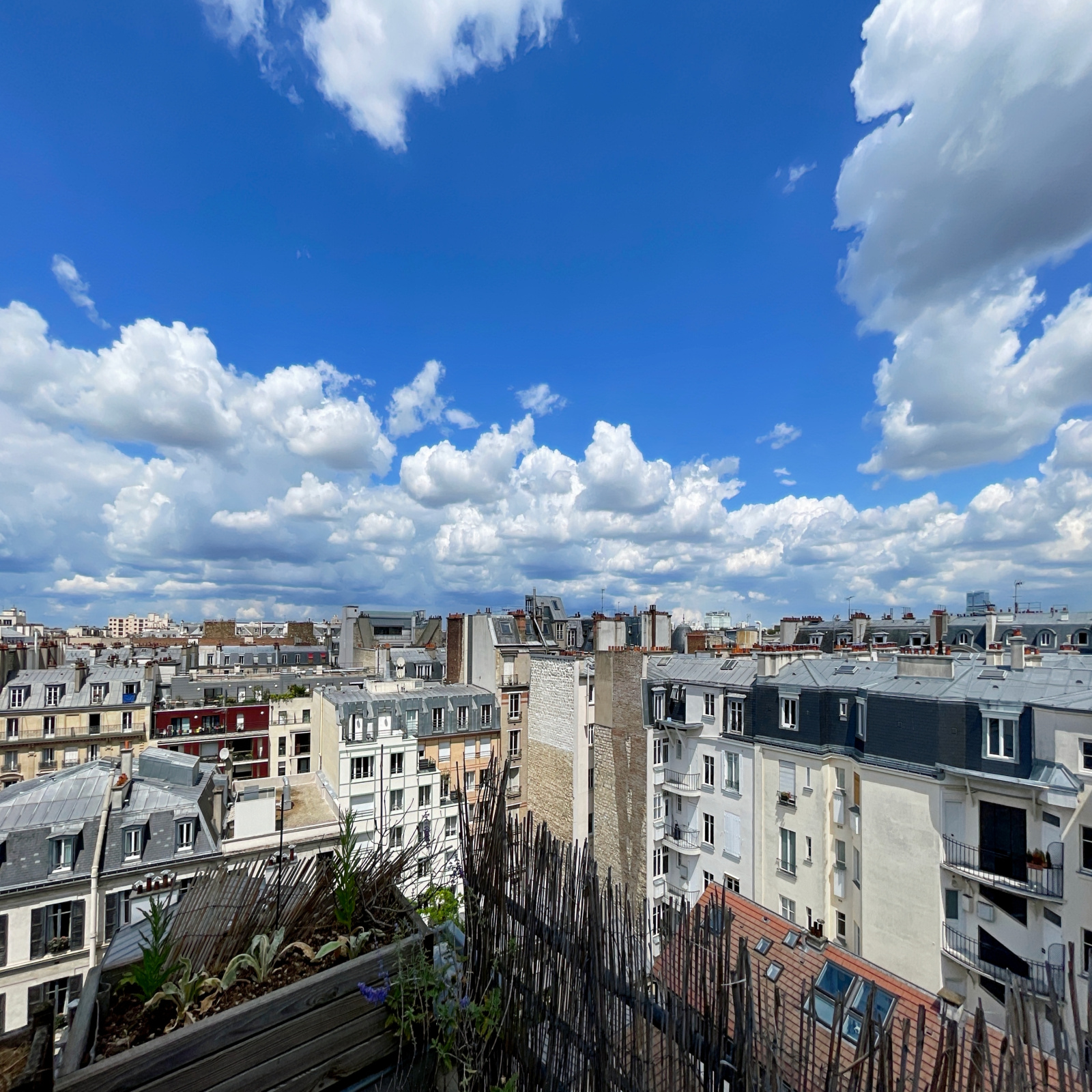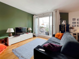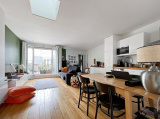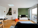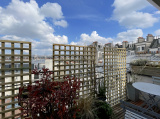 Cet appartement traversant, constitué d'une entrée distribuant des WC séparés et une salle d'eau, d'une vaste pièce de vie (31,24 m²) et d'une chambre, bénéficie de deux terrasses, une sur chaque pièce, dominant les toits de Paris côté salon (sud-est), offrant une vue dégagée sur l'ouest Parisien côté chambre.
