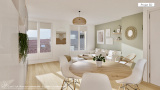 Charmant duplex d'une surface habitable de 112 m² (70,95 m² de surface carrez). Cet appartement au 4ème étage sans ascenseur ainsi qu'au 5ème et dernier étage a été entièrement rénové. Il se vit comme une maison. est composé au premier niveau d'une entrée, d'un salon traversant de 25 m² - orienté sud - donnant sur le balcon et sa vue sur le Sacré Coeur, d'une cuisine ouverte et de WC séparés. Au second niveau vous découvrirez 2 chambres (possibilité d'en créer une troisième par la division d'une des deux), une salle d'eau avec WC, un palier et un vaste espace pouvant servir de bureau ou de salle de jeux. Duplex refait à neuf avec de belles prestations (cuisine neuve et équipée, parquets en chêne...) profite d'une vue partiellement dégagée et est baigné de lumière. DPE Classe D, consommation B. Exemples d'aménagement, illustrations non contractuelles