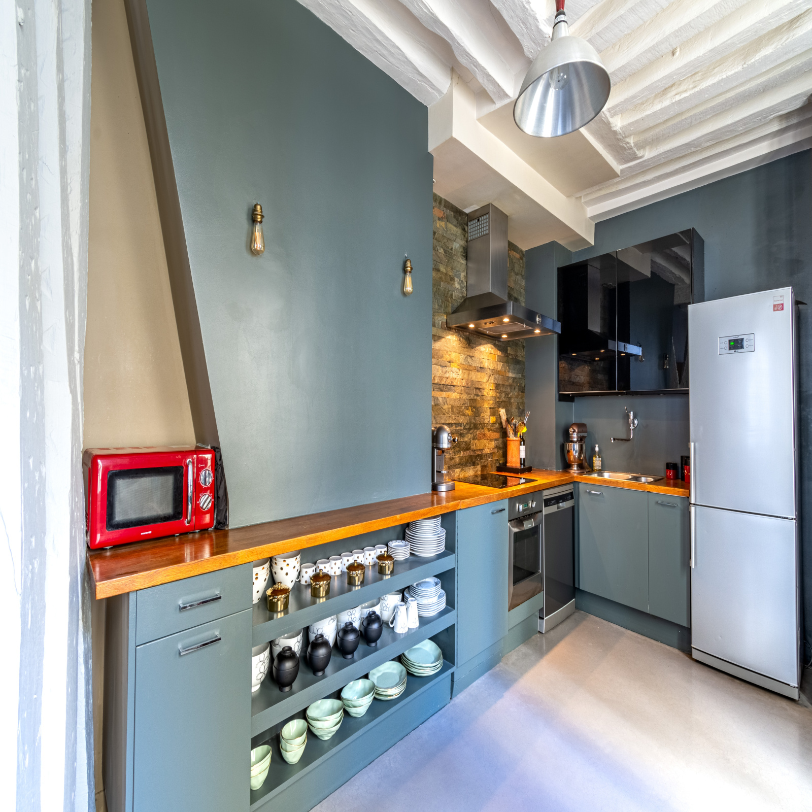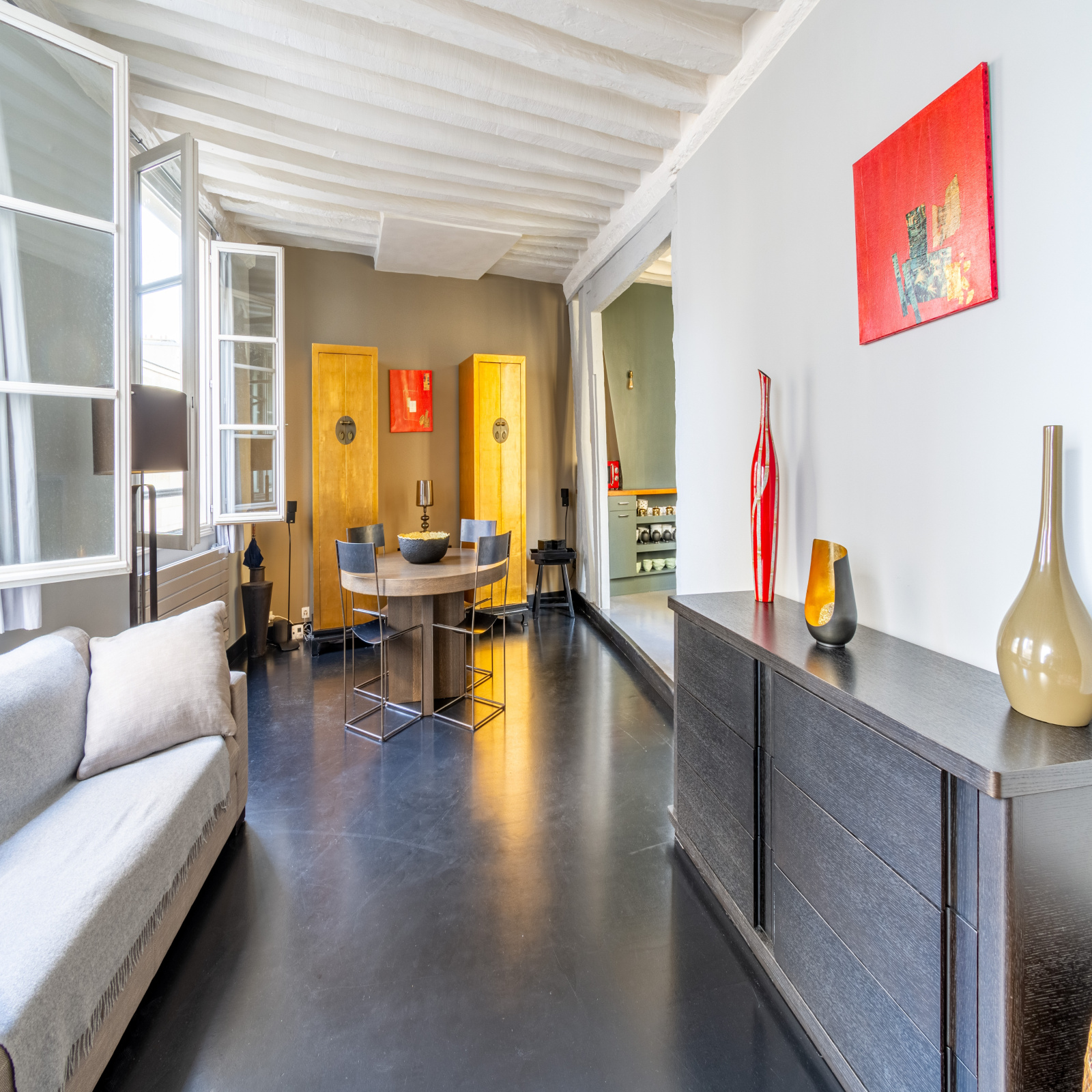 Au 2ème étage d'un immeuble ancien ravalé, nous vous proposons cet appartement traversant de 63,01 m² Carrez en parfait état et au calme. Refait par architecte avec des prestations haut de gamme, il se compose d'une entrée, d'un séjour de plus de 40 m² avec sa cuisine ouverte, d'une chambre, d'une salle de douche avec toilettes et d'une salle de bain. Ses éléments de carctère, ses poutres, ses 2,80 mètres de hauteur sous plafond, son sol en béton ciré et son volume de réception en font un bien rare.