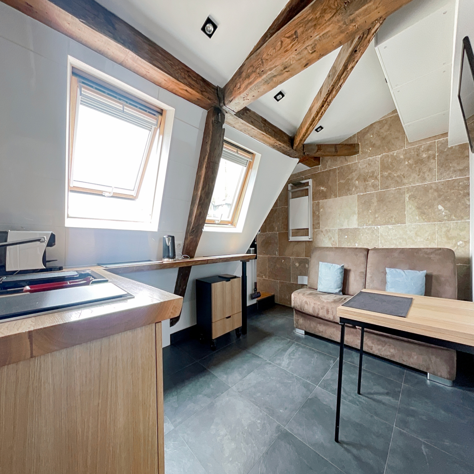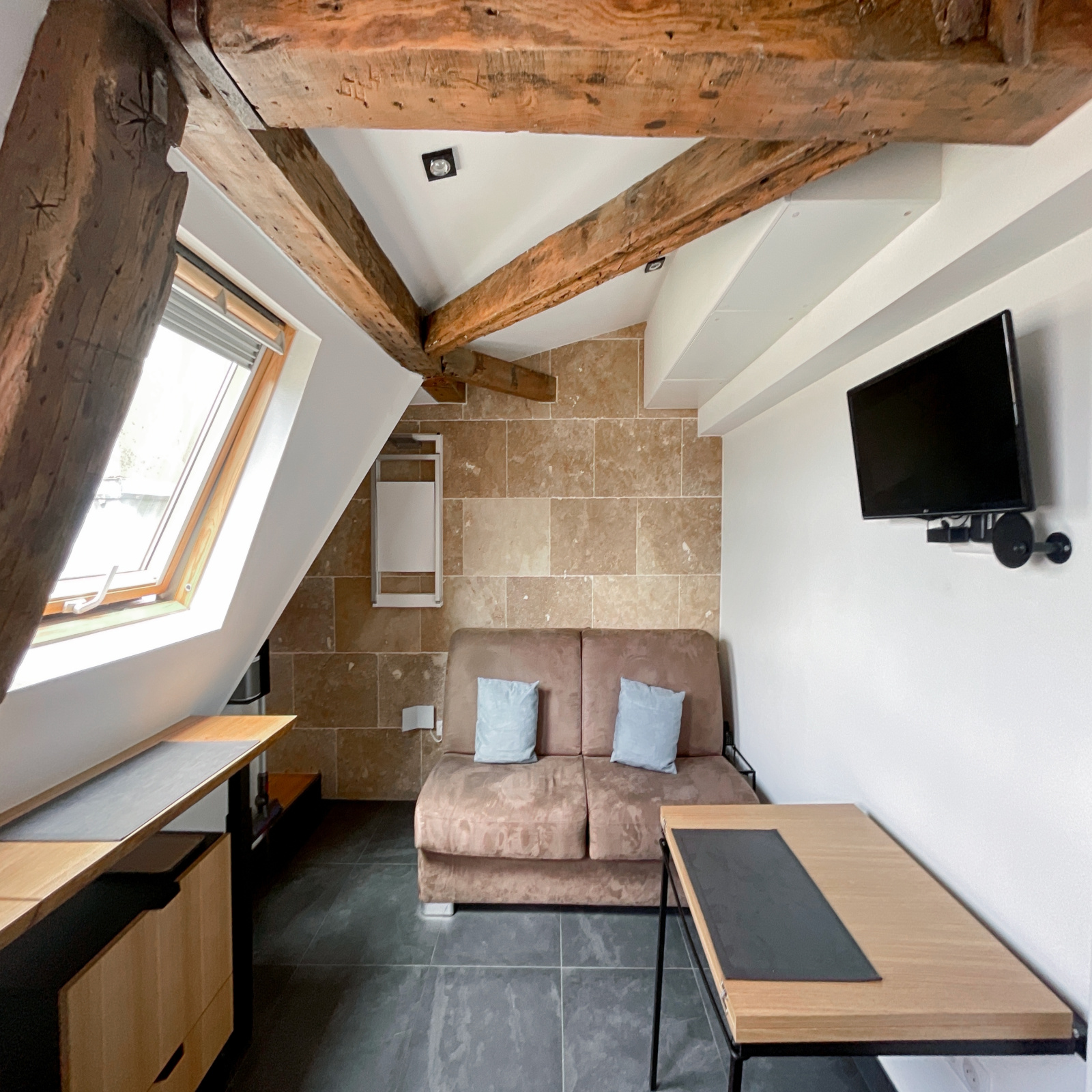 Idéalement situé, ce studio à la rénovation avec matériaux et mobilier de qualité, vous séduira aussi grace au charme de ses poutres, à son calme, à sa vue dégagée et à son exposition Ouest qui lui confèrent sa clarté.