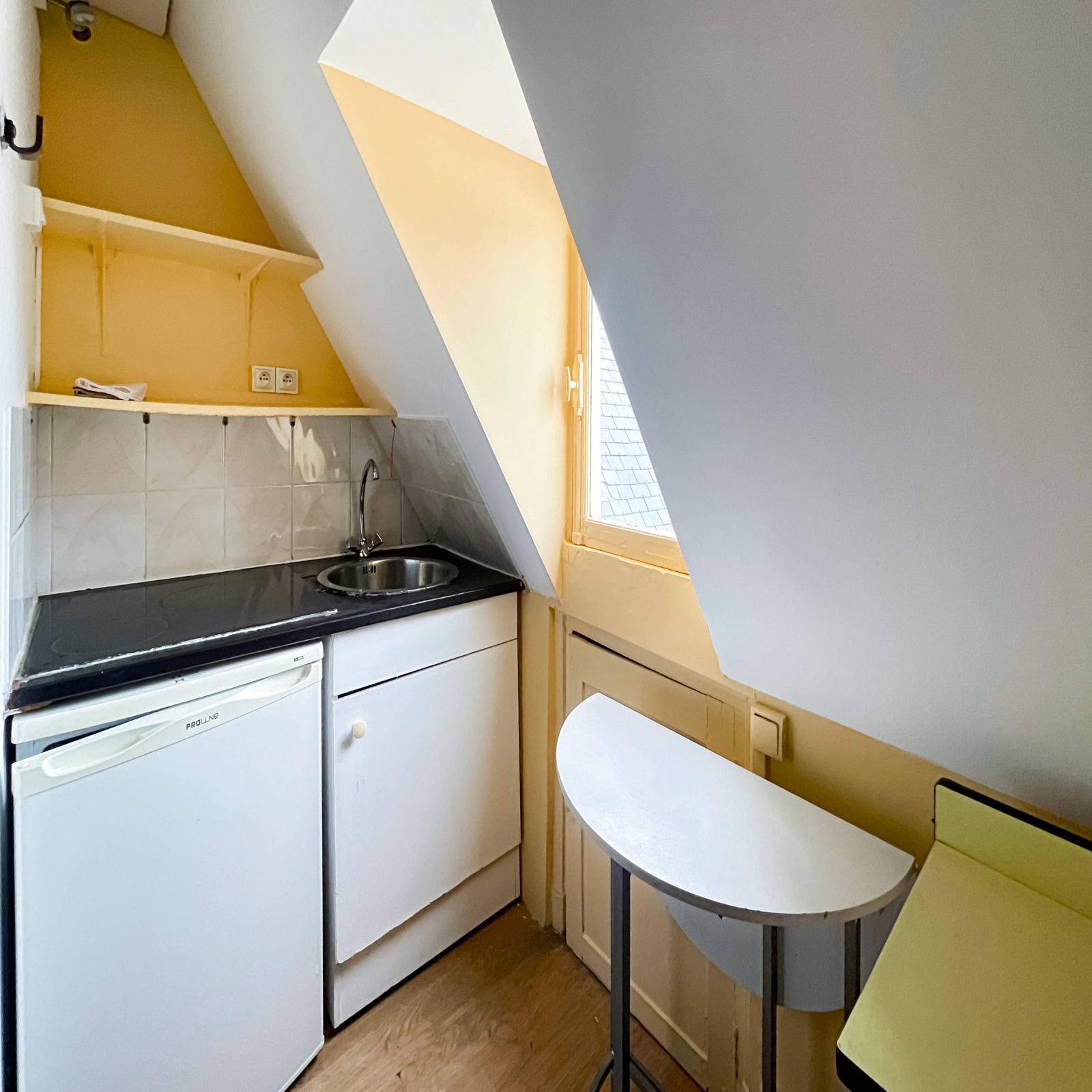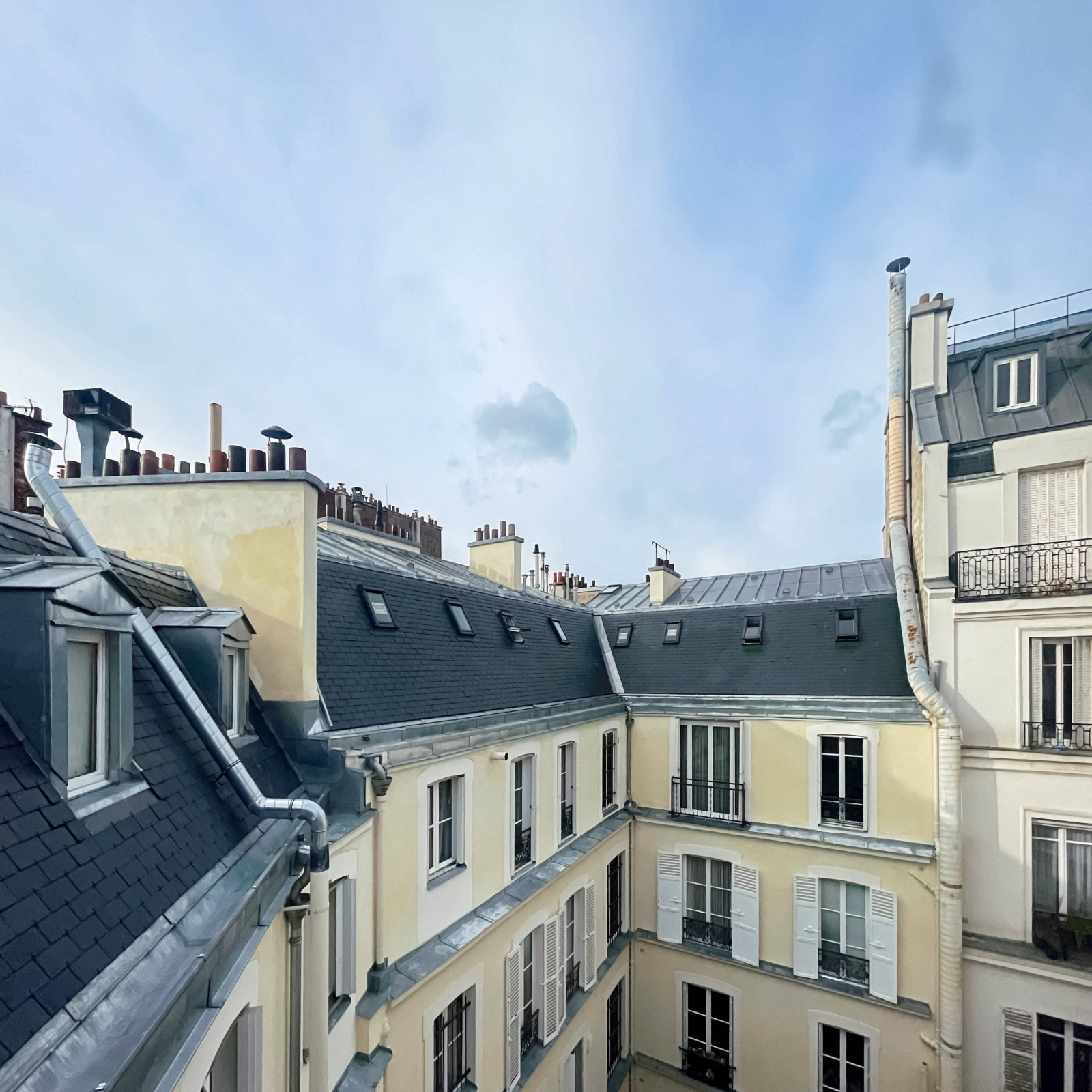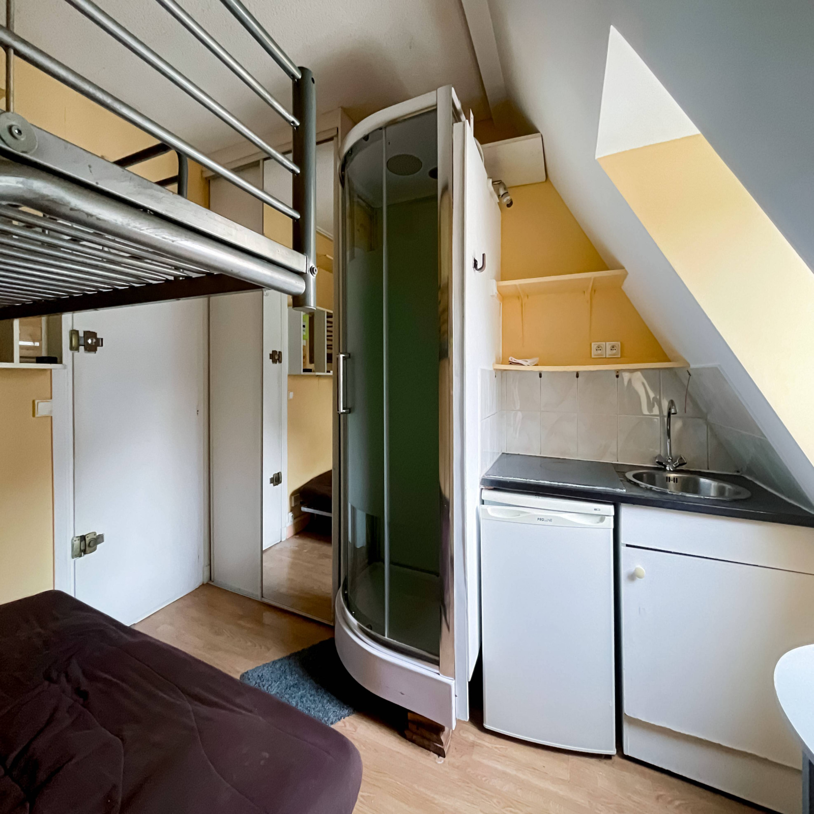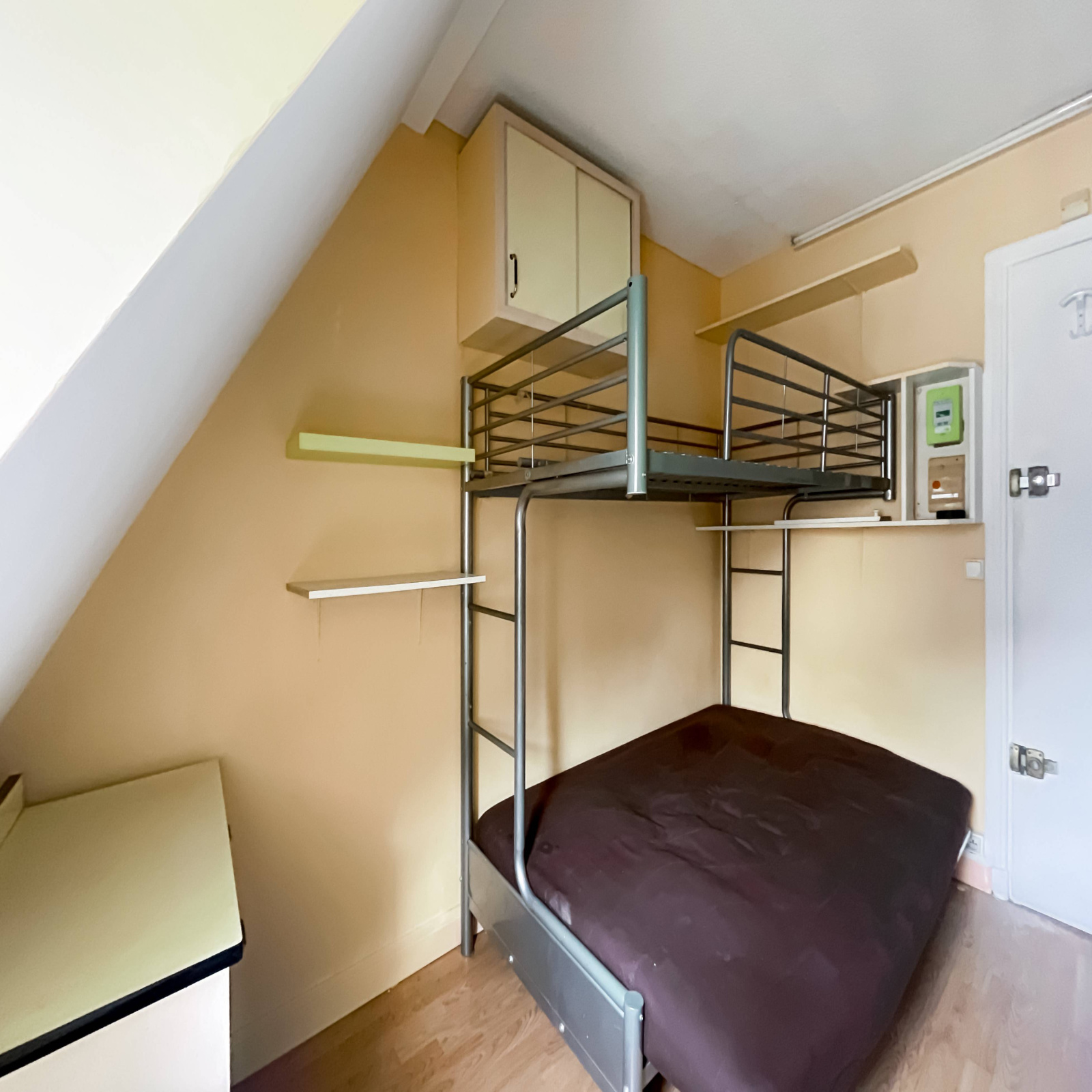 Rue de Saint Petersbourg, a proximité immédiate de la Place de Clichy, au 6ième et dernier étage sans ascenseur, d'un très bel immeuble ancien, chambre de service de 9,85 m² au sol, 7,77 en loi carrez. Volume 20 m3.