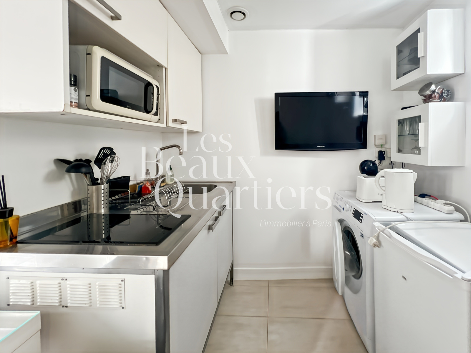 Joli 2 pièces meublé de 20,97 m² loi Carrez au 4ème étage dans un bel immeuble bien tenu avec ascenseur. Il se compose d'une pièce de vie avec une cuisine ouverte équipée (plaques de cuisson, micro-ondes, frigo, lave linge...), un canapé 2 places, une console, 3 tables gigogne, une télévision murale, d'une chambre avec un lit double et de grands placards intégrés, d'une salle d'eau avec douche, lavabo et toilettes.