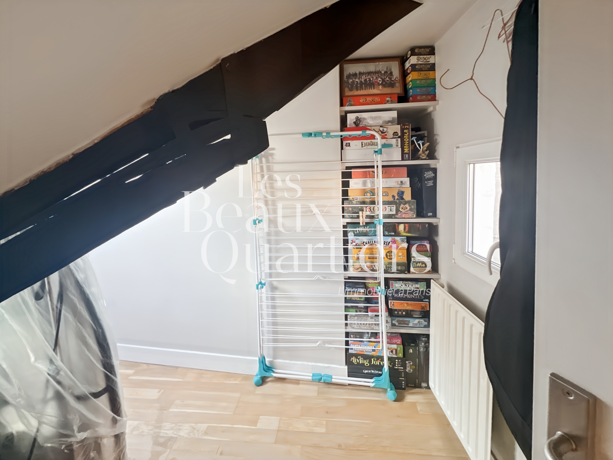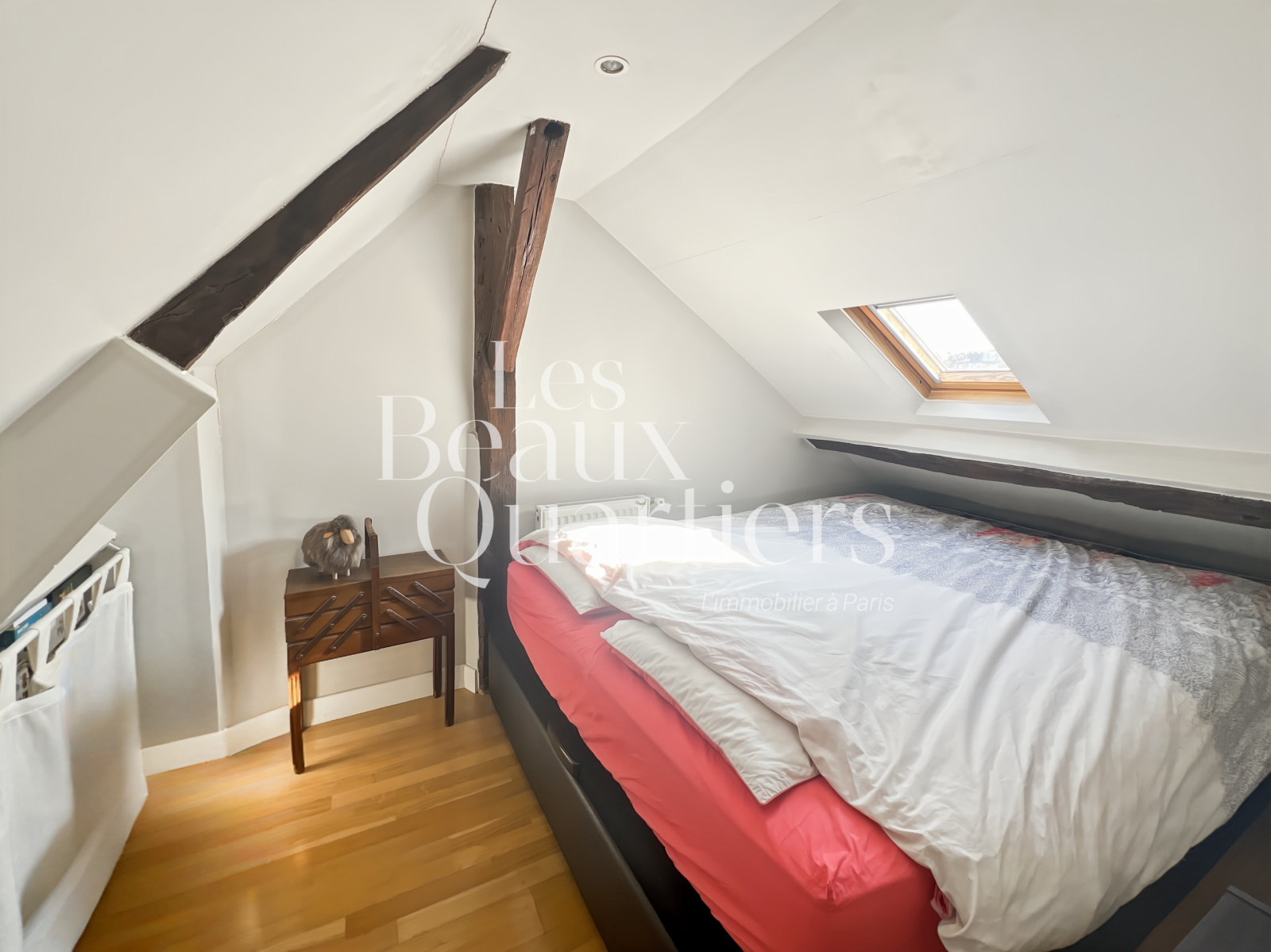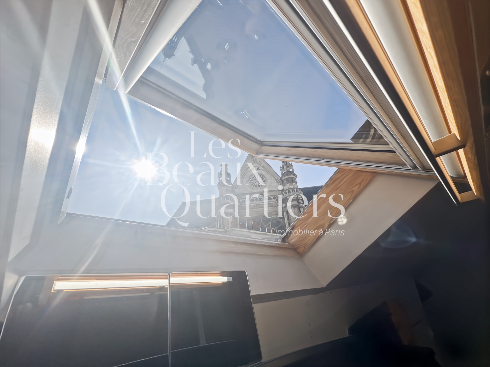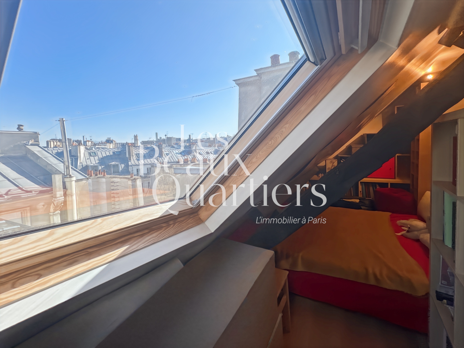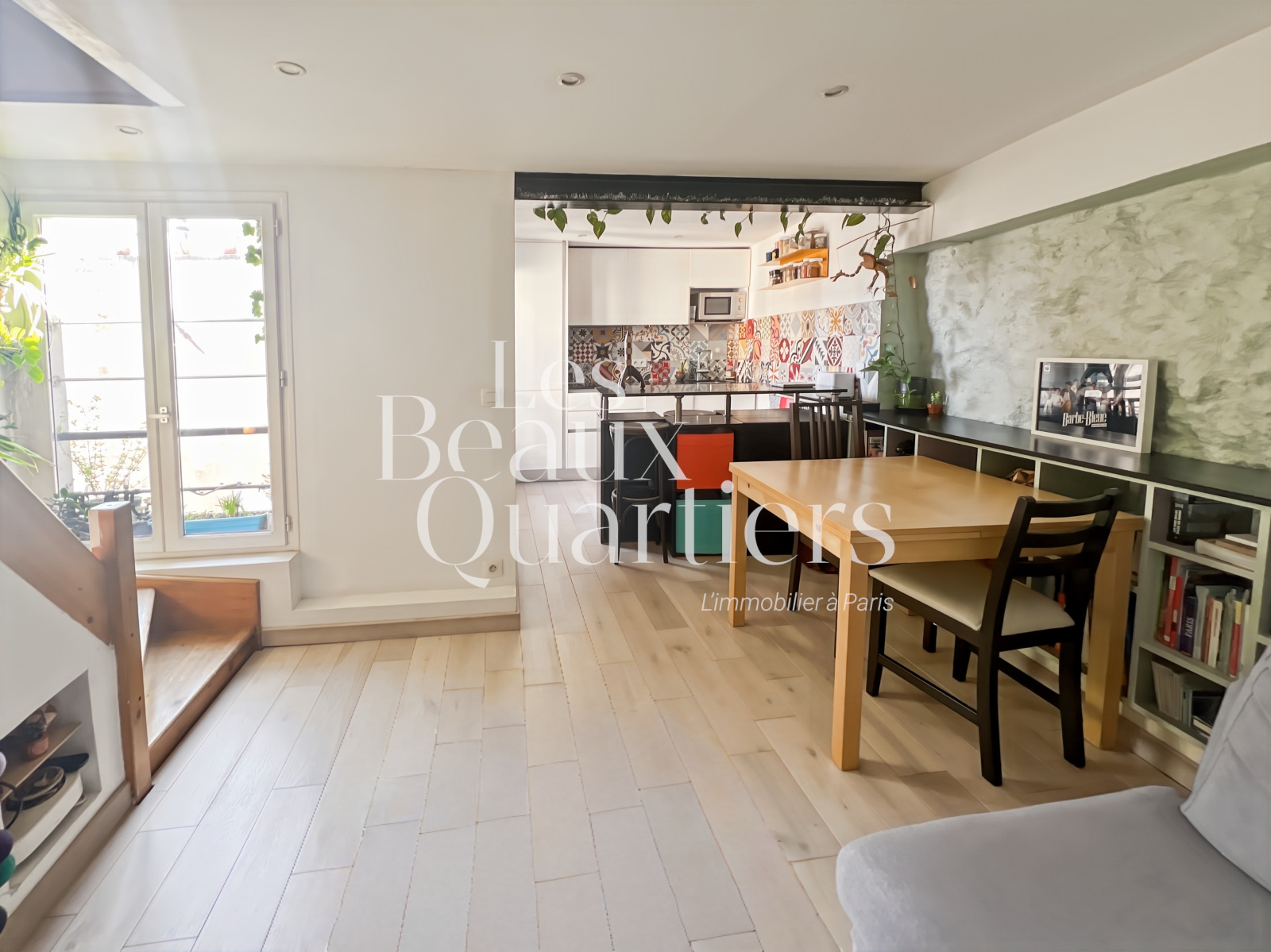 Paris (75001)Paris 1er - Montorgueil / rue du Jour - Duplex atypique en dernier étage Situé au cœur de Paris, niché au 5ème et dernier étage d’un immeuble ancien, découvrez ce charmant duplex, d’une superficie de 28,08 m² en loi Carrez et 58 m² au sol. Dès l’entrée, au 1er niveau, vous trouverez un joli séjour d'une surface de 20 m² environ avec cuisine ouverte et des toilettes séparés. Un escalier intérieur mène au second niveau profitant de belles poutres apparentes et d'une vue sur l'église Saint-Eustache ainsi que sur les toits de Paris. Vous y découvrirez une chambre, un agréable espace bureau, un troisième espace accueillant un canapé-lit et une salle d’eau. Cet appartement cosy, en bon état, vous séduira par son calme absolu bien qu'étant au coeur de Paris dans l'un des quartiers les plus animés, commerçants et les mieux désservis de Paris.