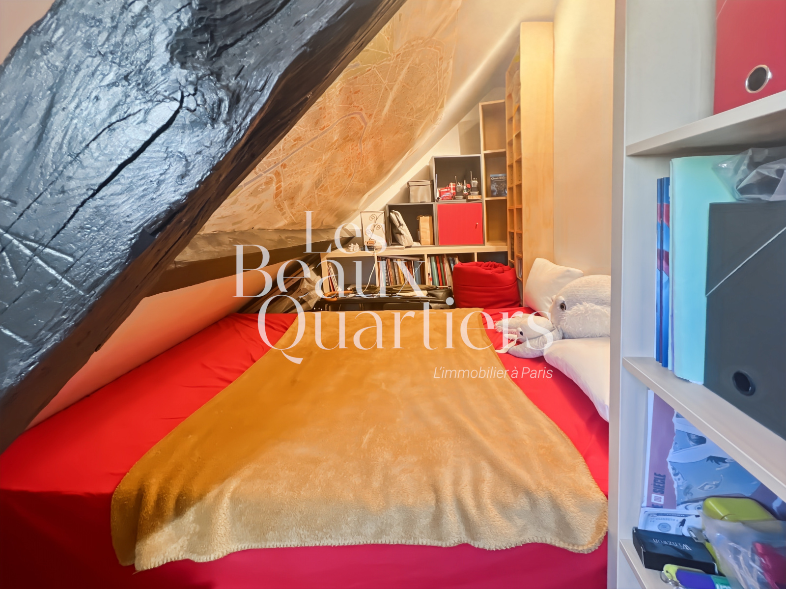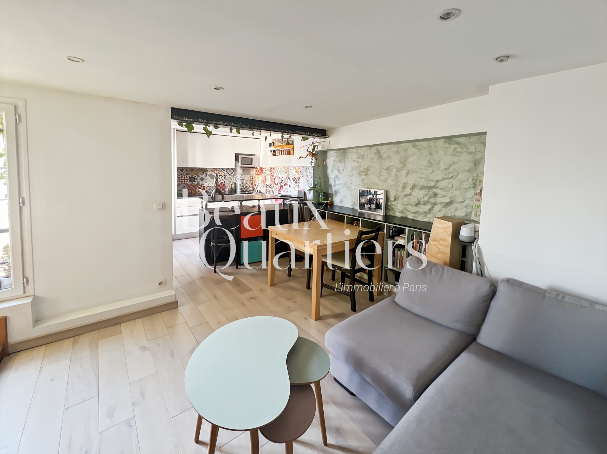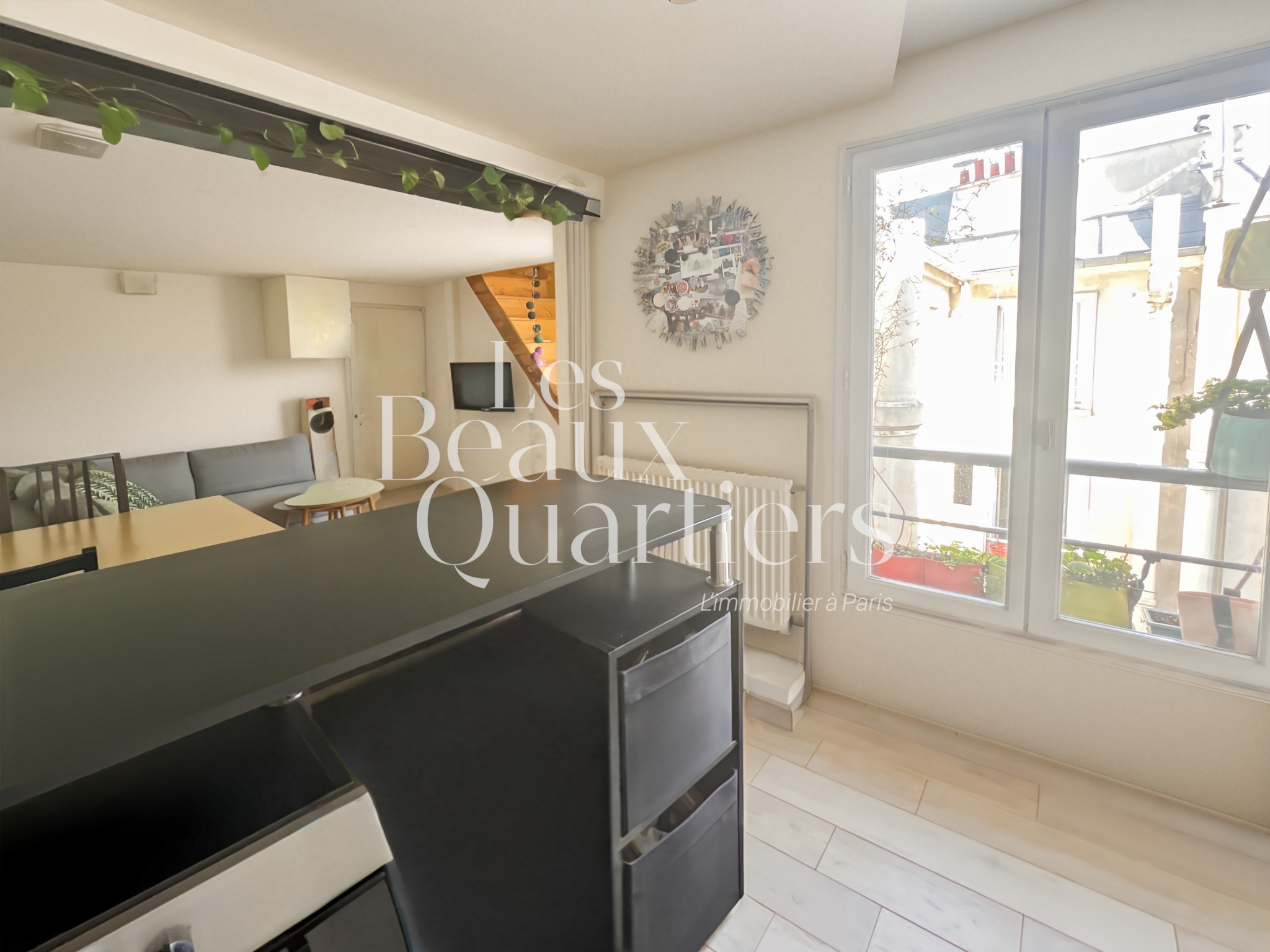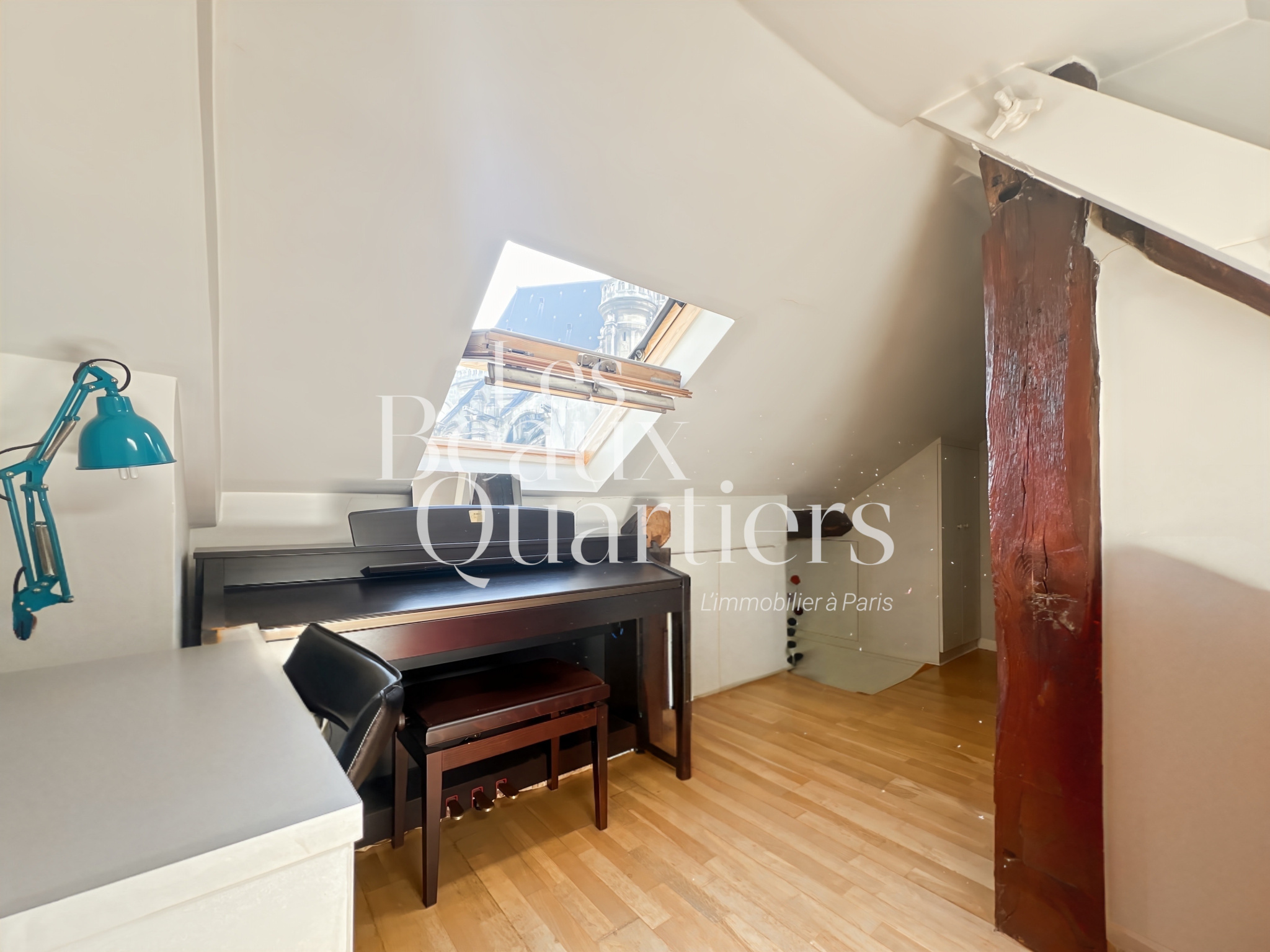 Paris (75001)Paris 1er - Montorgueil / rue du Jour - Duplex atypique en dernier étage Situé au cœur de Paris, niché au 5ème et dernier étage d’un immeuble ancien, découvrez ce charmant duplex, d’une superficie de 28,08 m² en loi Carrez et 58 m² au sol. Dès l’entrée, au 1er niveau, vous trouverez un joli séjour d'une surface de 20 m² environ avec cuisine ouverte et des toilettes séparés. Un escalier intérieur mène au second niveau profitant de belles poutres apparentes et d'une vue sur l'église Saint-Eustache ainsi que sur les toits de Paris. Vous y découvrirez une chambre, un agréable espace bureau, un troisième espace accueillant un canapé-lit et une salle d’eau. Cet appartement cosy, en bon état, vous séduira par son calme absolu bien qu'étant au coeur de Paris dans l'un des quartiers les plus animés, commerçants et les mieux désservis de Paris.