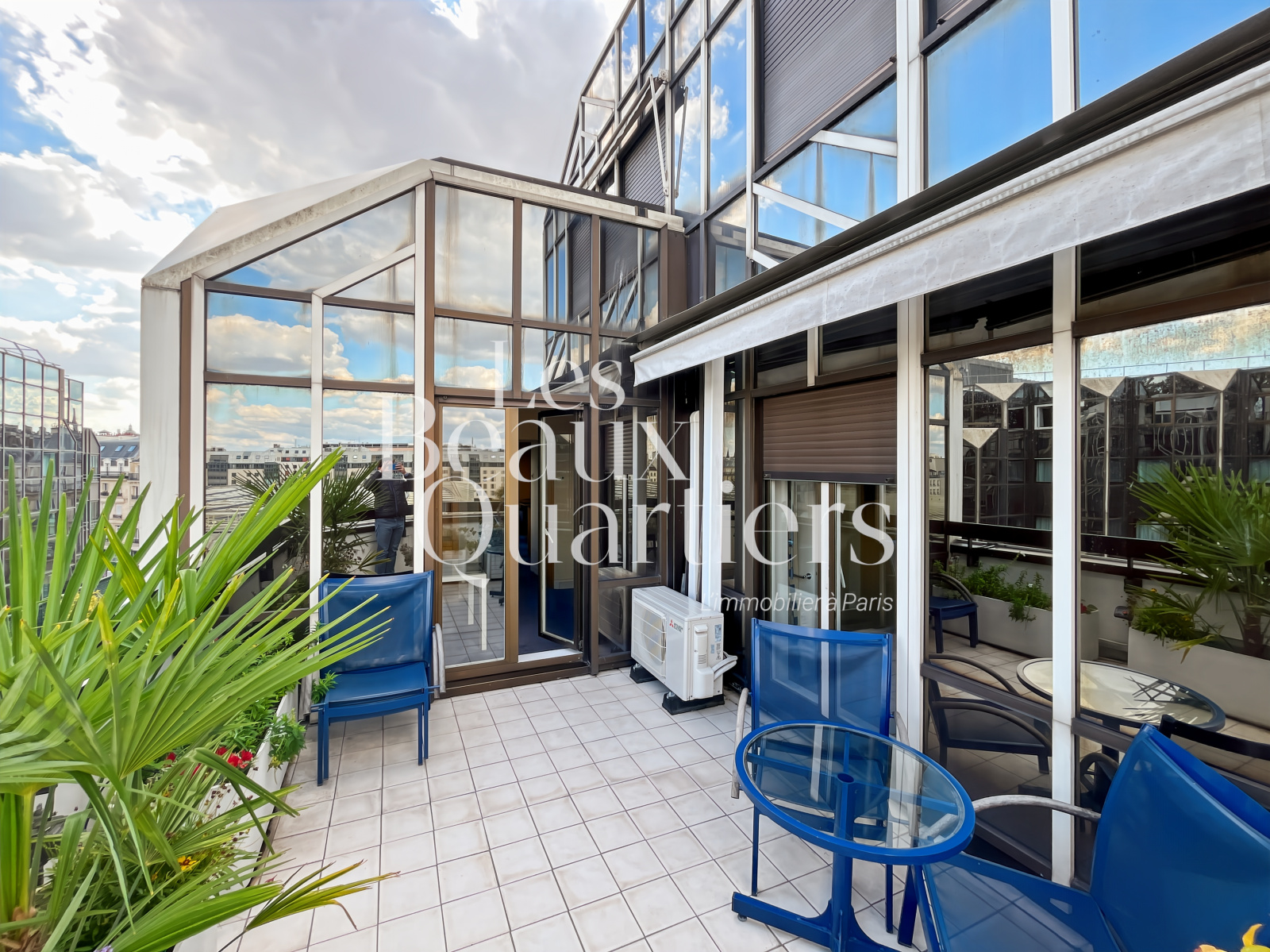 Paris (75001)En exclusivité Les Beaux Quartiers, au coeur du Paris historique, dominant La Canopée des Halles, un grand 3 pièces de 80,57 m² Carrez et ses 24 m² de terrasses. Situé au 5ème étage - avec ascenseur - d’un immeuble de 1986, cet appartement d'angle est composé d’une entrée, d’une vaste pièce de vie ouverte sur un large balcon-terrasse (11 m²), d’une salle à manger ou bureau (2ième chambre à l'origine) ouvrant sur une terrasse (13m²) qui offre une vue spectaculaire sur la Canopée et enfin d'une chambre. Une salle d’eau avec WC et un WC séparé donnant sur l’entrée complètent cet appartement qui reste à magnifier.