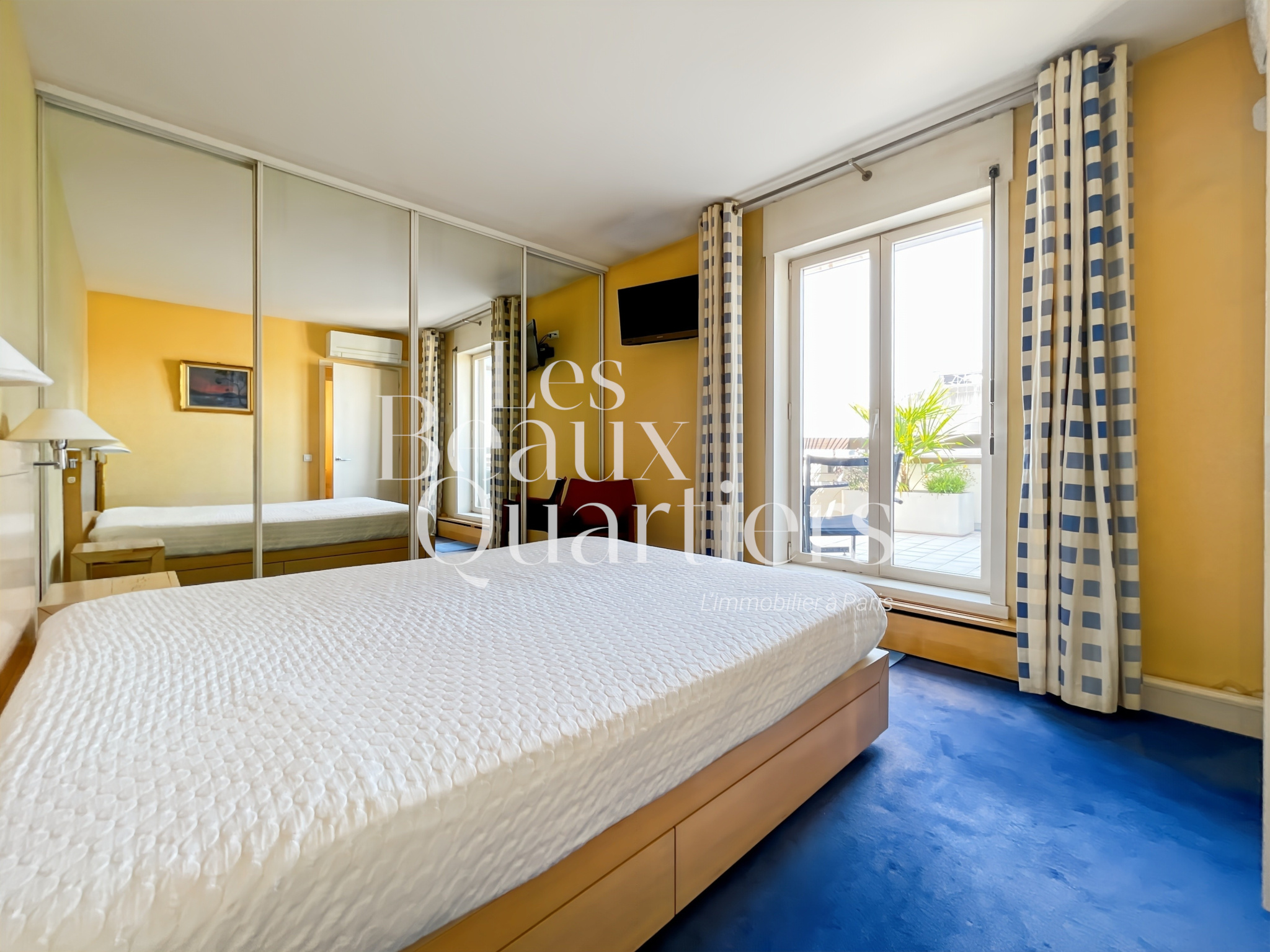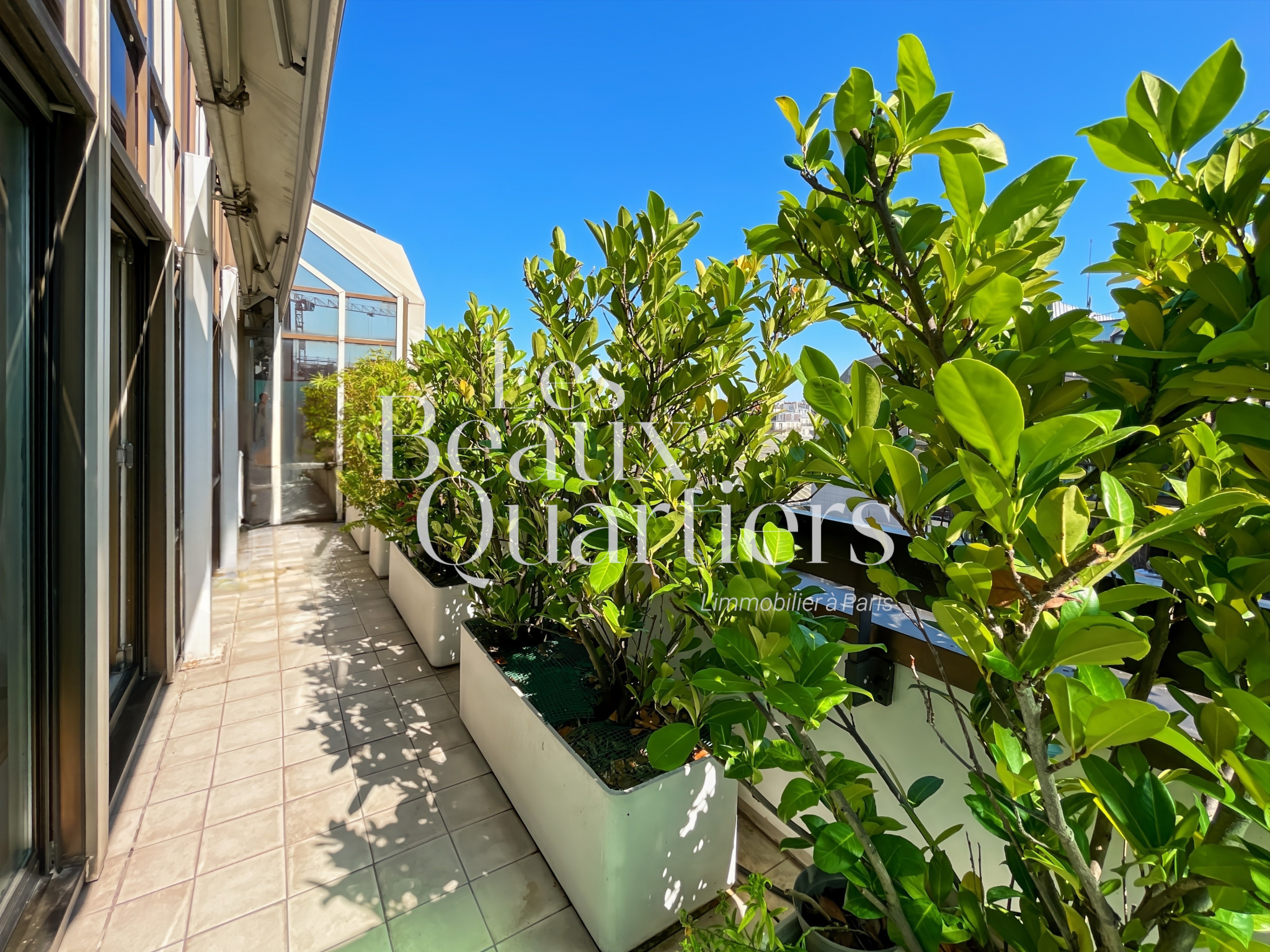 Idéalement situé dans un quartier vivant et commerçant, mais absolument au calme, cet appartement clair et lumineux vous offre de beaux espaces de réception, bénéficie de vues dominantes et de l'agrément de terrasses en plein Paris, au sein d'une copropriété moderne et confortable.
