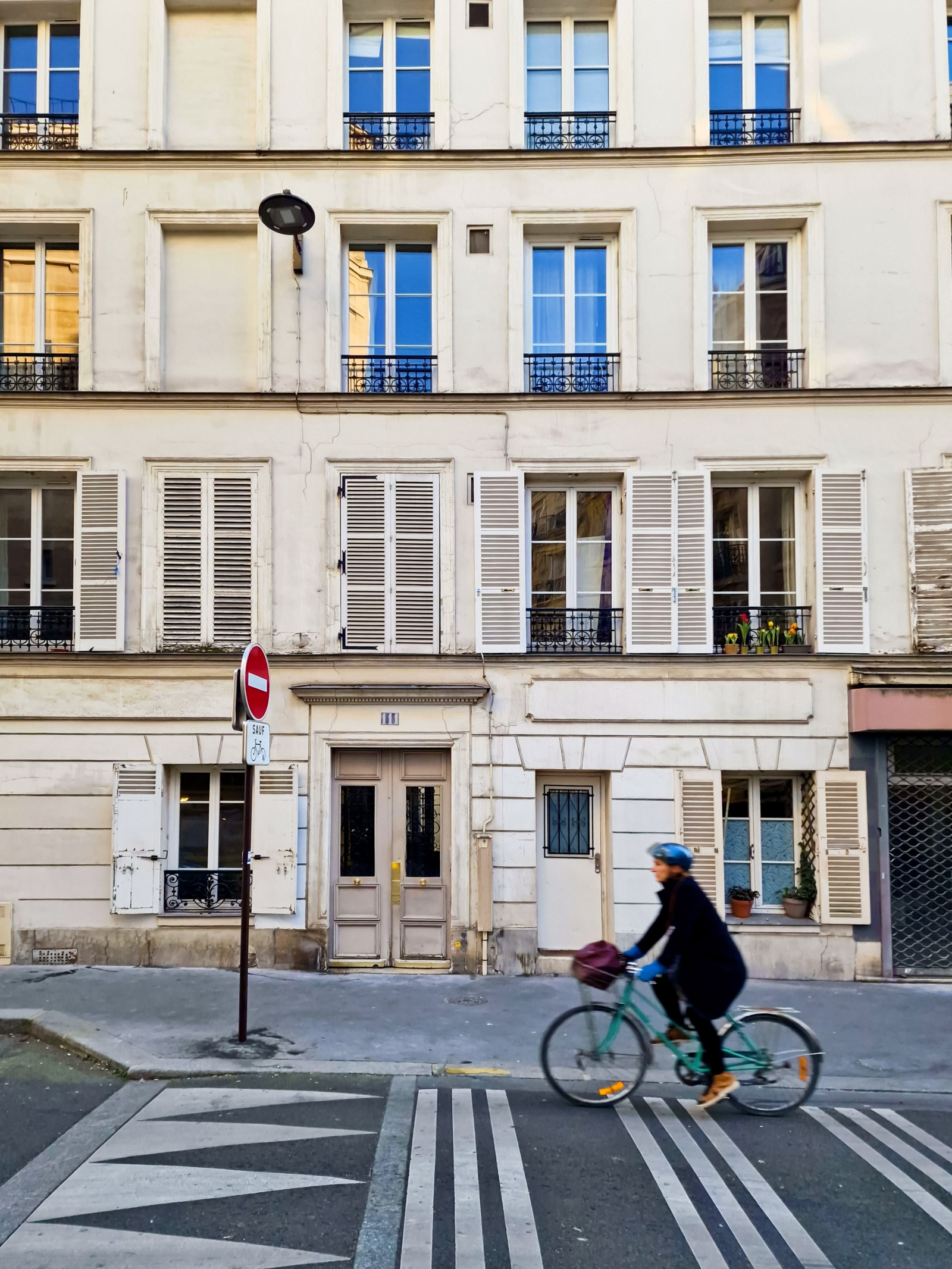 Il se compose d'une entrée distribuant un salon de 24 m² sur rue avec une cuisine américaine, une chambre donnant sur une cour arborée, une salle de bain et des toilettes séparées.