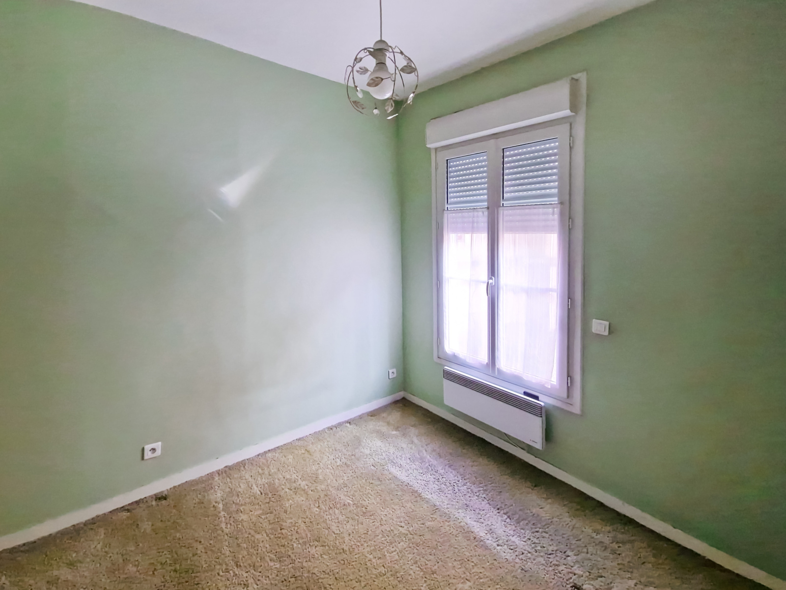 Belle hauteur sous plafond, fenêtres double vitrage et chauffage individuel électrique.